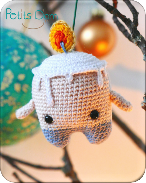 Pour les mettre dans le sapin c’est très facile, il suffit de glisser une attache pour boule de Noël dans une maille sur le haut de l’amigurumi (toujours garder les attaches des boules cassées !).