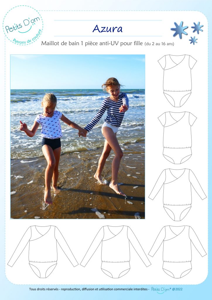 Cela commence à devenir la tradition du 2 mai chez Petits D’om : la sortie des patrons de maillot de bain. Et je suis très heureuse de pouvoir vous proposer deux nouveaux modèles pour filles aujourd’hui : Calella et Azura !