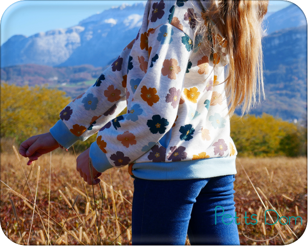 Tous les tissus viennent de chez Cœur Couture, j’ai choisi du sweat molleton pour les petites et du sherpa pour moi. Les bords-côte sont ceux de See You at Six. Pour Margot j’ai cousu le 8 ans, pour Alice aussi mais allongé au 10 ans et pour moi le 16 ans. N’oubliez pas de bien prendre les mensurations de votre enfant, choisissez la taille en fonction du tour de poitrine, puis ajuster la longueur si besoin. Je vous ai aussi mis les dimensions du vêtement fini dans les explications.
