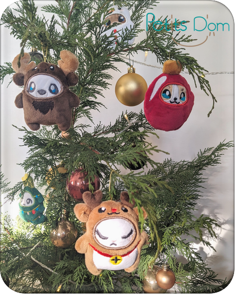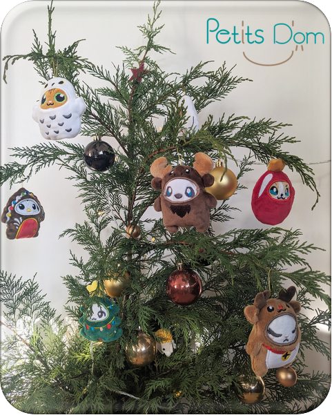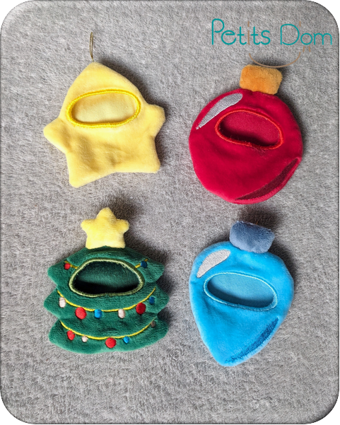 On peut ajouter un petit lien sur le haut des costumes pour ensuite les accrocher sur le sapin (ils mesurent environ 9 cm de haut).