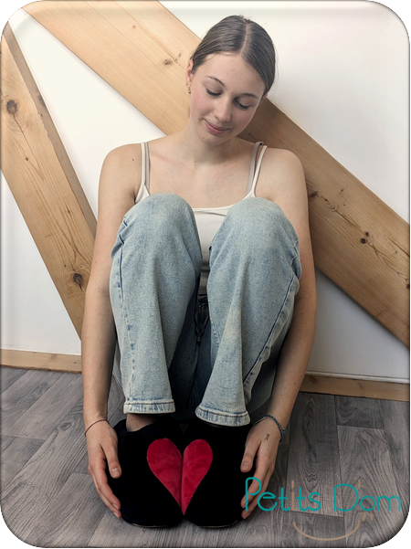 Un demi-cœur sur chaque pied pour ne former qu’un dès qu’ils sont côte à côte. C’est mignon n’est-ce pas ?