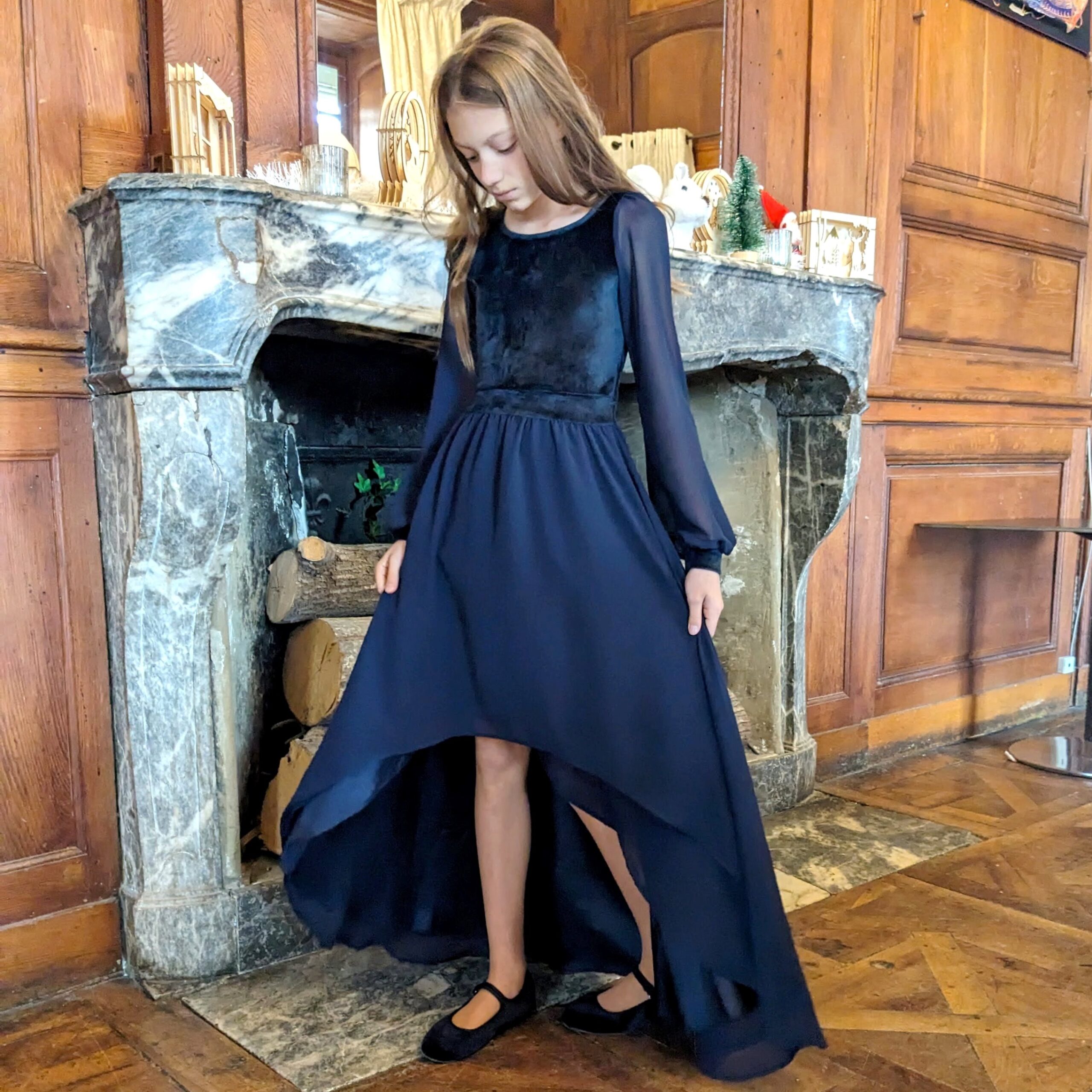 Patron de robe asymétrique de fête/soirée/cérémonie pour fille du 2 au 16 ans.
