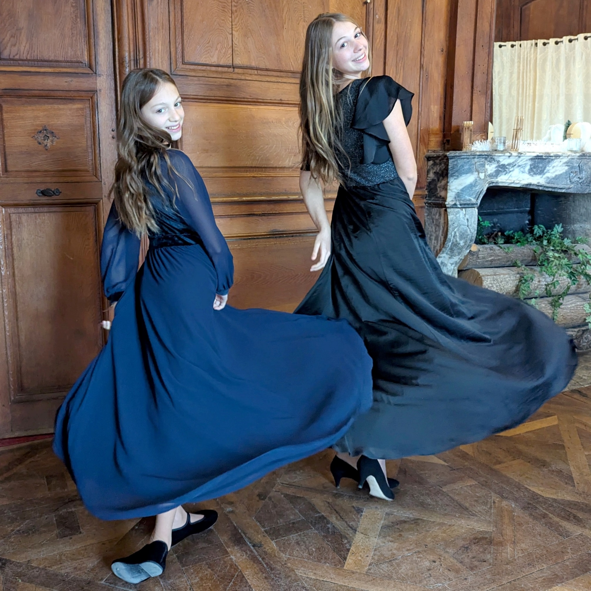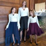 La partie jupe est en tissu chaîne et trame. Elle est asymétrique et proposée en 2 longueurs. Selon le tissu choisi, le rendu sera plus ou moins fluide et volumineux. Si vous utilisez du tulle, vous pourrez coudre une bande d’ourlet large au bas de la jupe.