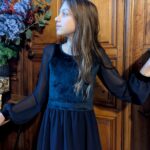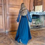 Robe bleue : velours stretch, crêpe Georgette, doublure Venezia